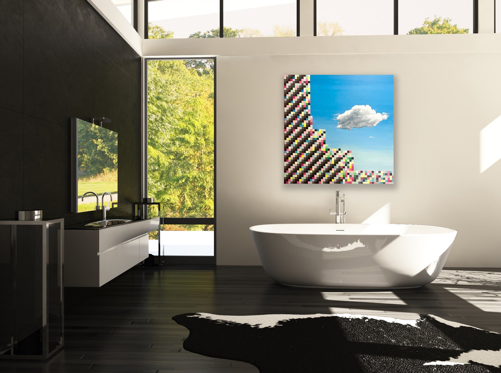 Et unikt originalverk med fargerike kontraster som garantert blir husets blikkfang! Med dette bildet på veggen vil du våkne opp til sommer og gode vibber hver morgen, hele året rundt! La den blå himmelen fylle deg med ny energi hver dag! Maleriet er et tidsriktig bilde på selve livet, med alle sine kontraster, så vell som sosiale medier kontra virkelighet. Sett farge på veggen med dette kunstverket, og minn deg selv og dine gjester på hva som virkelig gjelder her og nå i livet; Å puste, å nyte og å leve i nuet! "Alt vil bli bra!"